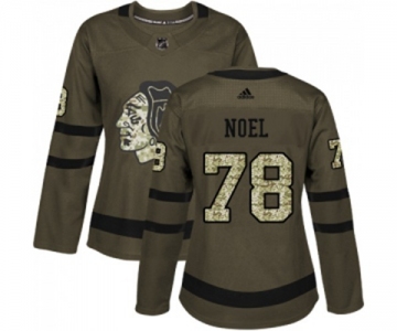Women Adidas Chicago Blackhawks #78 Nathan Noel Authentic Green Salute to Service NHL Jersey