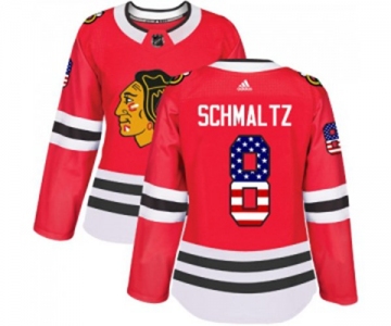 Women Adidas Chicago Blackhawks #8 Nick Schmaltz Authentic Red USA Flag Fashion NHL Jersey