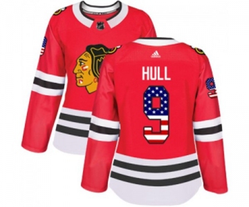 Women Adidas Chicago Blackhawks #9 Bobby Hull Authentic Red USA Flag Fashion NHL Jersey