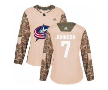 Women Adidas Columbus Blue Jackets #7 Jack Johnson Camo Authentic 2017 Veterans Day Stitched NHL Jersey