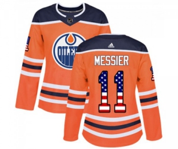 Women Adidas Edmonton Oilers #11 Mark Messier Authentic Orange USA Flag Fashion NHL Jersey