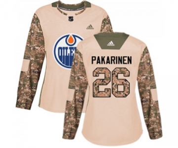 Women Adidas Edmonton Oilers #26 Iiro Pakarinen Authentic Camo Veterans Day Practice NHL Jersey