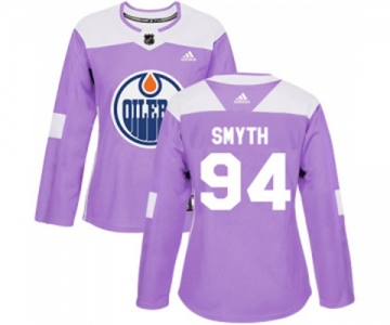 Women Adidas Edmonton Oilers #94 Ryan Smyth Authentic Purple Fights Cancer Practice NHL Jersey