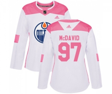 Women Adidas Edmonton Oilers #97 Connor McDavid Authentic White Pink Fashion NHL Jersey