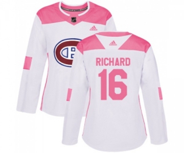 Women Adidas Montreal Canadiens #16 Henri Richard Authentic White Pink Fashion NHL Jersey