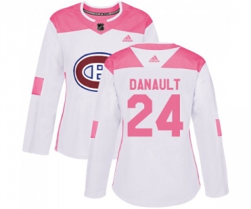 Women Adidas Montreal Canadiens #24 Phillip Danault Authentic White Pink Fashion NHL Jersey