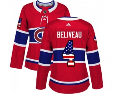 Women Adidas Montreal Canadiens #4 Jean Beliveau Authentic Red USA Flag Fashion NHL Jersey