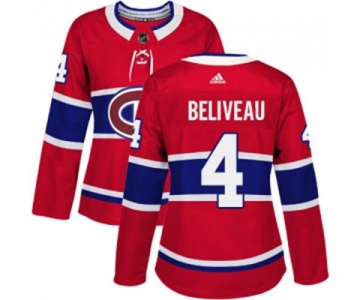 Women Adidas Montreal Canadiens #4 Jean Beliveau Premier Red Home NHL Jersey