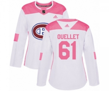 Women Adidas Montreal Canadiens #61 Xavier Ouellet Authentic White Pink Fashion NHL Jersey