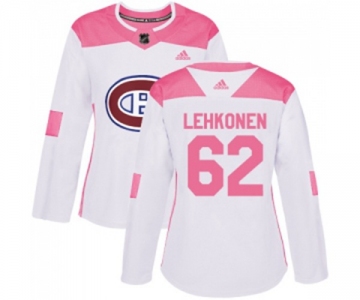 Women Adidas Montreal Canadiens #62 Artturi Lehkonen Authentic White Pink Fashion NHL Jersey