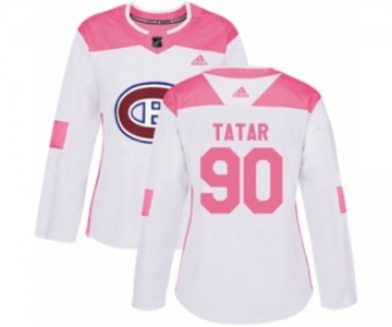 Women Adidas Montreal Canadiens #90 Tomas Tatar Authentic White Pink Fashion NHL Jersey