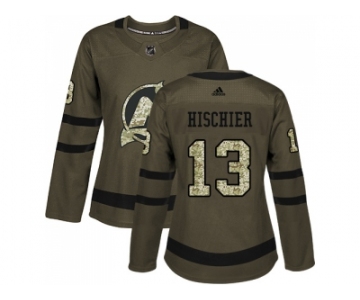 Women Adidas New Jersey Devils #13 Nico Hischier Green Salute to Service Stitched NHL Jersey