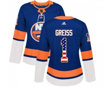 Women Adidas New York Islanders #1 Thomas Greiss Authentic Royal Blue USA Flag Fashion NHL Jersey