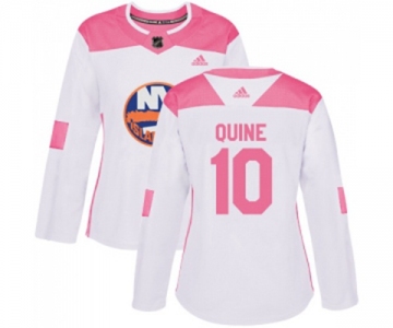Women Adidas New York Islanders #10 Alan Quine Authentic White Pink Fashion NHL Jersey