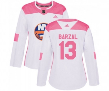 Women Adidas New York Islanders #13 Mathew Barzal Authentic White Pink Fashion NHL Jersey