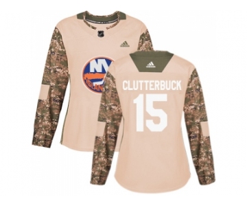 Women Adidas New York Islanders #15 Cal Clutterbuck Camo Authentic 2017 Veterans Day Stitched NHL Jersey
