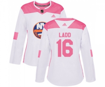 Women Adidas New York Islanders #16 Andrew Ladd Authentic White Pink Fashion NHL Jersey