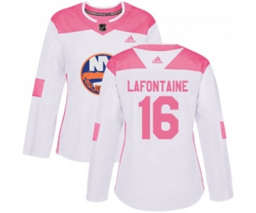 Women Adidas New York Islanders #16 Pat LaFontaine Authentic White Pink Fashion NHL Jersey