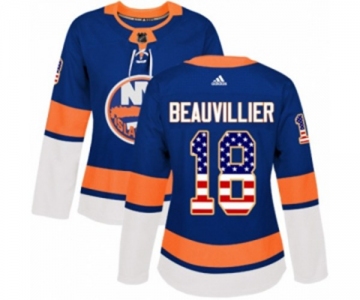 Women Adidas New York Islanders #18 Anthony Beauvillier Authentic Royal Blue USA Flag Fashion NHL Jersey