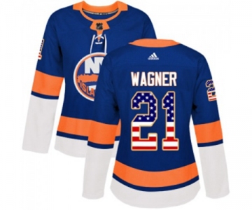 Women Adidas New York Islanders #21 Chris Wagner Authentic Royal Blue USA Flag Fashion NHL Jersey