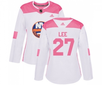 Women Adidas New York Islanders #27 Anders Lee Authentic White Pink Fashion NHL Jersey