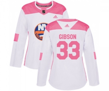 Women Adidas New York Islanders #33 Christopher Gibson Authentic White Pink Fashion NHL Jersey