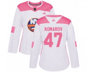 Women Adidas New York Islanders #47 Leo Komarov Authentic White Pink Fashion NHL Jersey