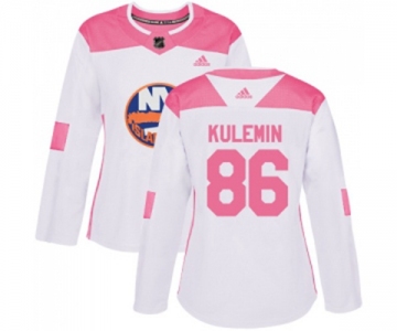 Women Adidas New York Islanders #86 Nikolay Kulemin Authentic White Pink Fashion NHL Jersey