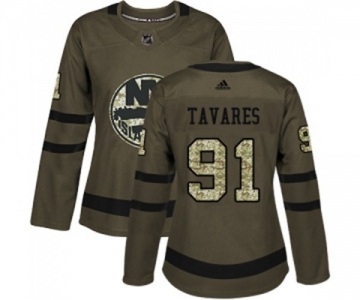 Women Adidas New York Islanders #91 John Tavares Authentic Green Salute to Service NHL Jersey