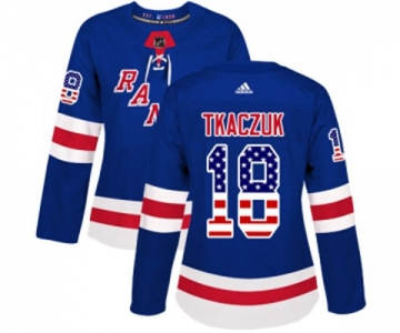 Women Adidas New York Rangers #18 Walt Tkaczuk Authentic Royal Blue USA Flag Fashion NHL Jersey