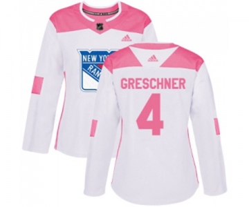 Women Adidas New York Rangers #4 Ron Greschner Authentic White Pink Fashion NHL Jersey