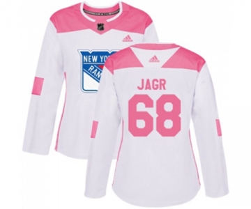 Women Adidas New York Rangers #68 Jaromir Jagr Authentic White Pink Fashion NHL Jersey