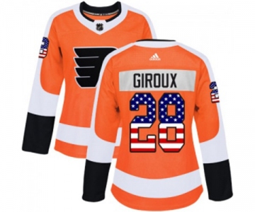 Women Adidas Philadelphia Flyers #28 Claude Giroux Authentic Orange USA Flag Fashion NHL Jersey