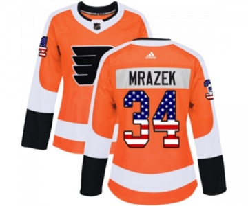 Women Adidas Philadelphia Flyers #34 Petr Mrazek Authentic Orange USA Flag Fashion NHL Jersey