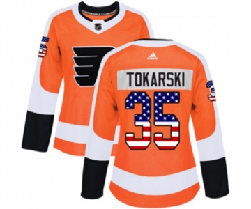Women Adidas Philadelphia Flyers #35 Dustin Tokarski Authentic Orange USA Flag Fashion NHL Jersey