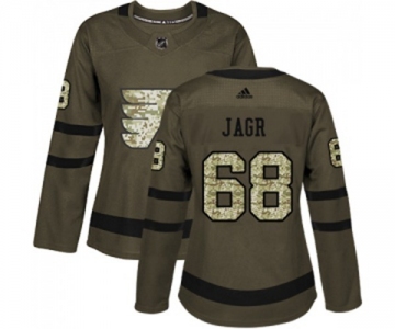 Women Adidas Philadelphia Flyers #68 Jaromir Jagr Authentic Green Salute to Service NHL Jersey