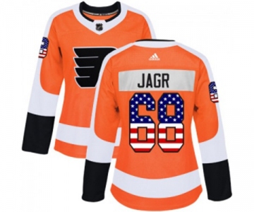 Women Adidas Philadelphia Flyers #68 Jaromir Jagr Authentic Orange USA Flag Fashion NHL Jersey