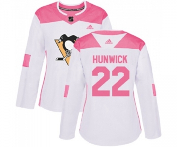 Women Adidas Pittsburgh Penguins #22 Matt Hunwick Authentic White Pink Fashion NHL Jersey