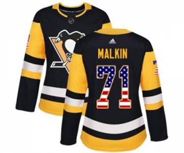 Women Adidas Pittsburgh Penguins #71 Evgeni Malkin Authentic Black USA Flag Fashion NHL Jersey