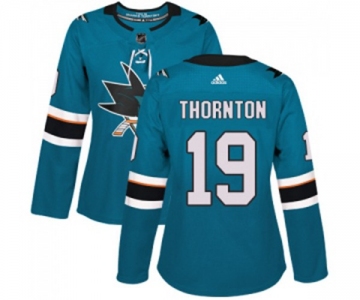 Women Adidas San Jose Sharks #19 Joe Thornton Authentic Teal Green Home NHL Jersey