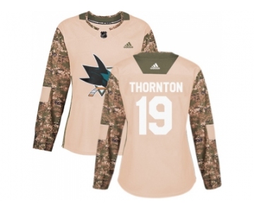 Women Adidas San Jose Sharks #19 Joe Thornton Camo Authentic 2017 Veterans Day Stitched NHL Jersey