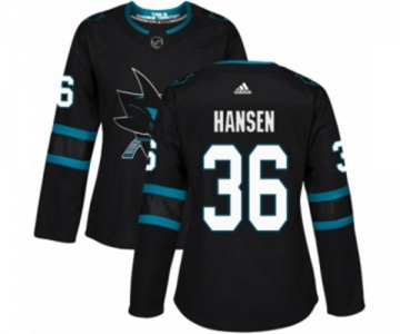 Women Adidas San Jose Sharks #36 Jannik Hansen Premier Black Alternate NHL Jersey
