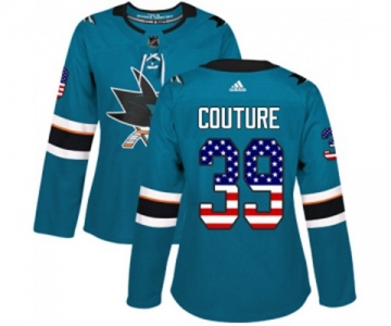 Women Adidas San Jose Sharks #39 Logan Couture Authentic Teal Green USA Flag Fashion NHL Jersey