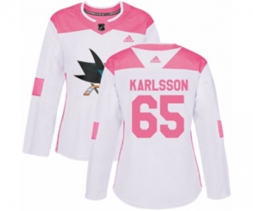 Women Adidas San Jose Sharks #65 Erik Karlsson Authentic White Pink Fashion NHL Jersey