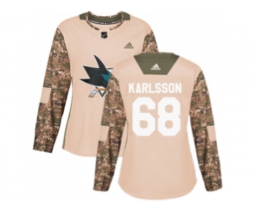 Women Adidas San Jose Sharks #68 Melker Karlsson Camo Authentic 2017 Veterans Day Stitched NHL Jersey
