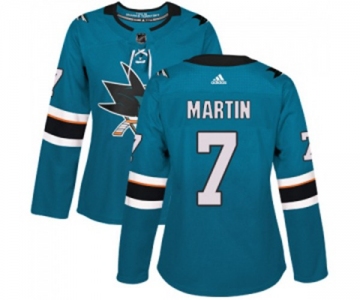 Women Adidas San Jose Sharks #7 Paul Martin Premier Teal Green Home NHL Jersey