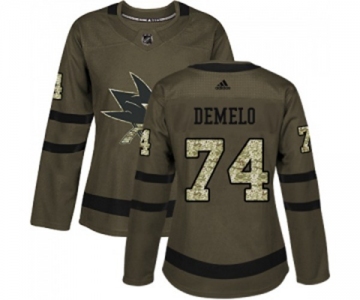 Women Adidas San Jose Sharks #74 Dylan DeMelo Authentic Green Salute to Service NHL Jersey