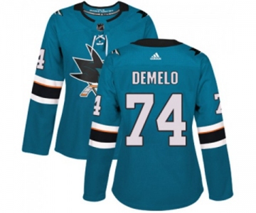 Women Adidas San Jose Sharks #74 Dylan DeMelo Premier Teal Green Home NHL Jersey