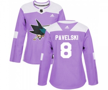 Women Adidas San Jose Sharks #8 Joe Pavelski Authentic Purple Fights Cancer Practice NHL Jersey