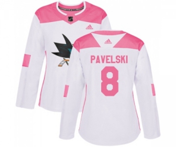 Women Adidas San Jose Sharks #8 Joe Pavelski Authentic White Pink Fashion NHL Jersey